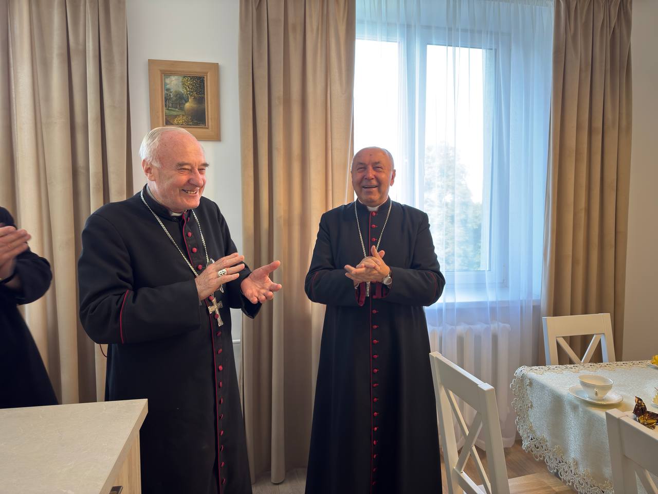 Духоўныя і свецкія супрацоўнікі розных аддзелаў курыі прыбылі з віншаваннямі ў Сапоцкін. Першы біскуп Гродзенскай дыяцэзіі сустрэўся там з імі ў рэкалекцыйным доме, які з нядаўняга часу стаў яго новай рэзідэнцыяй.