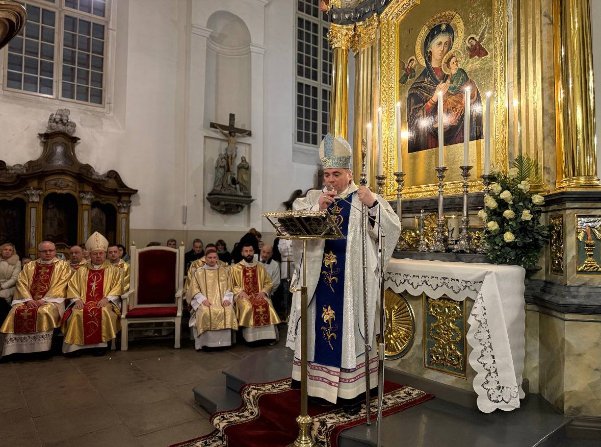 Разважаючы над фрагментам Апакаліпсісу, які ўключалі літургічныя чытанні гэтага дня, біскуп падкрэсліў: “Бог не пакідае сваіх дзяцей, і асаблівым чынам не пакідае тых, хто хаваецца пад плашчом Марыі. У гэты вечар, калі мы адкрываем адноўлены алтар Маці Божай Нястомнай Дапамогі, гучыць асабліва выразна: Марыя – наша абарона ў час духоўнай барацьбы. Колькі душаў у нашай катэдры знайшлі перад гэтым абразом моц, калі прыходзілі, будучы на мяжы адчаю. Колькі разоў хто-небудзь з нас, можа, і без слоў, проста глянуў у Яе вочы і адчуў: “Я не адзін. Я не згублены. Бог блізка. Марыя са мной”.
