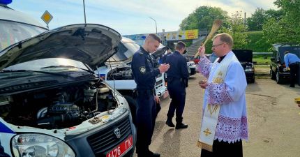 Кусташ санктуарыя ў Тракелях благаславіў аўтатранспарт Лідскага РАУС