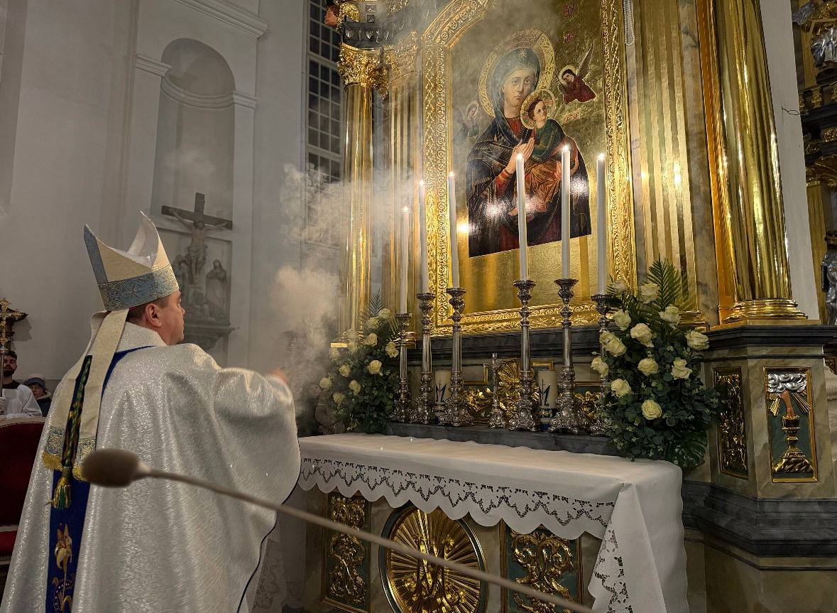 Разважаючы над фрагментам Апакаліпсісу, які ўключалі літургічныя чытанні гэтага дня, біскуп падкрэсліў: “Бог не пакідае сваіх дзяцей, і асаблівым чынам не пакідае тых, хто хаваецца пад плашчом Марыі. У гэты вечар, калі мы адкрываем адноўлены алтар Маці Божай Нястомнай Дапамогі, гучыць асабліва выразна: Марыя – наша абарона ў час духоўнай барацьбы. Колькі душаў у нашай катэдры знайшлі перад гэтым абразом моц, калі прыходзілі, будучы на мяжы адчаю. Колькі разоў хто-небудзь з нас, можа, і без слоў, проста глянуў у Яе вочы і адчуў: “Я не адзін. Я не згублены. Бог блізка. Марыя са мной”.